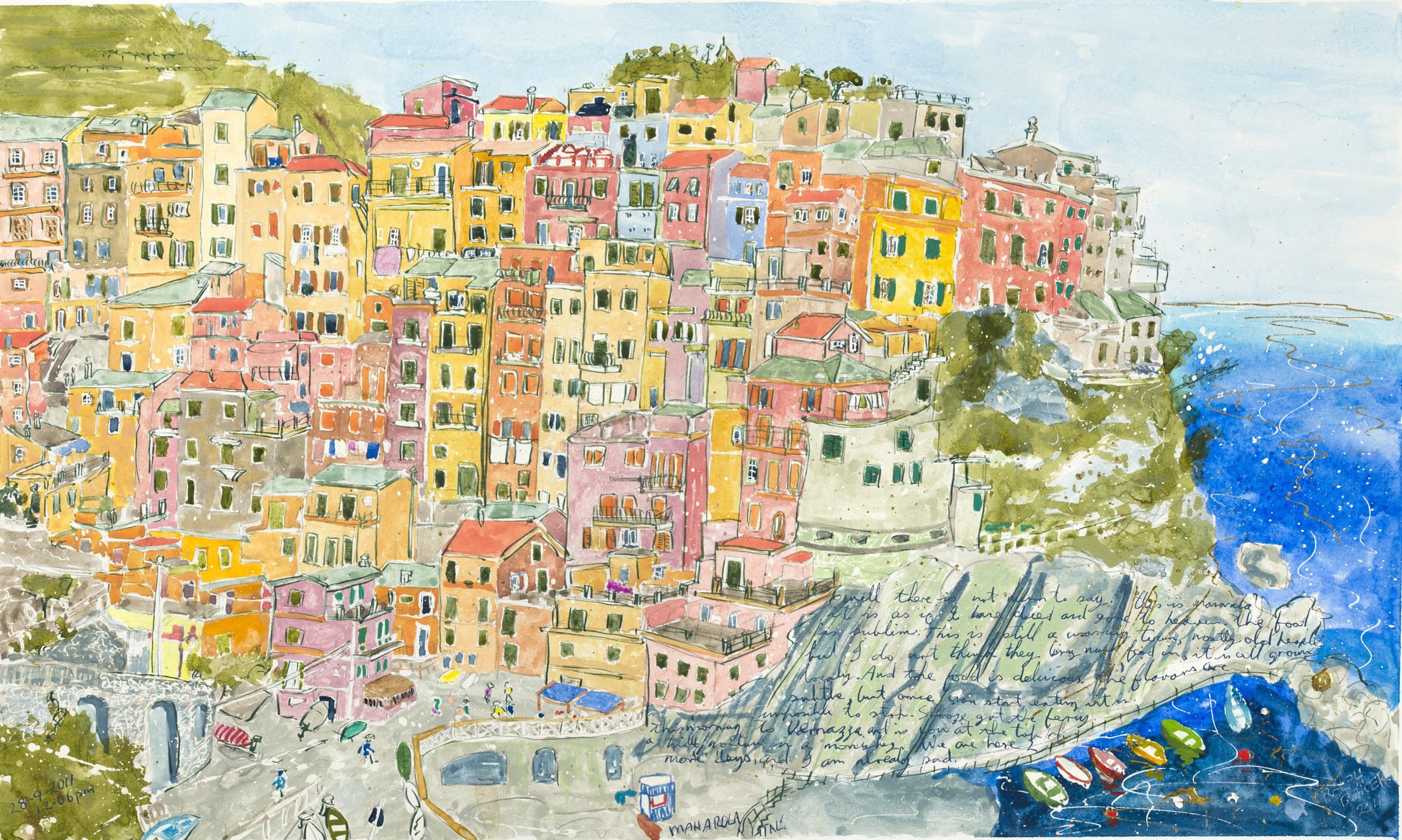 Watercolour painting of Cinque Terre in Italy. Dimensions Painting Size: 60 x 36 cm *Artwork is unframed.